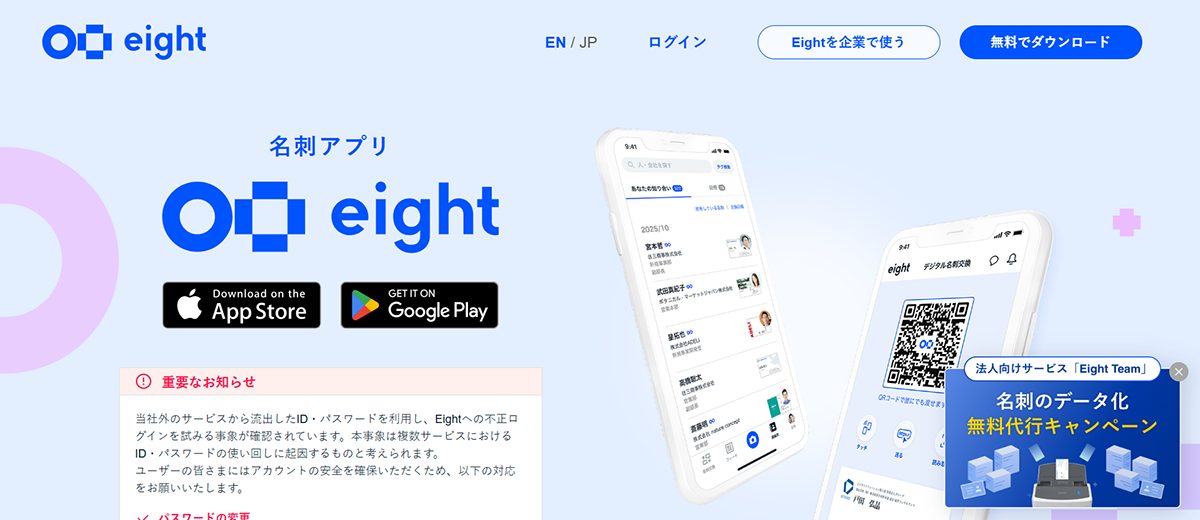 | 料金プラン | ・無料版:無料 ・Eightプレミアム:月額600円/年額6,000円 |