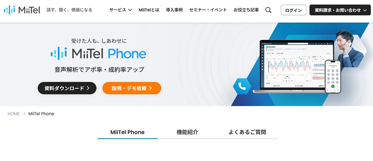 | MiiTel Phone | 音声解析AI「MiiTel」を活用したCTIで、AIが具体的な改善提案を行う | 要問い合わせ |