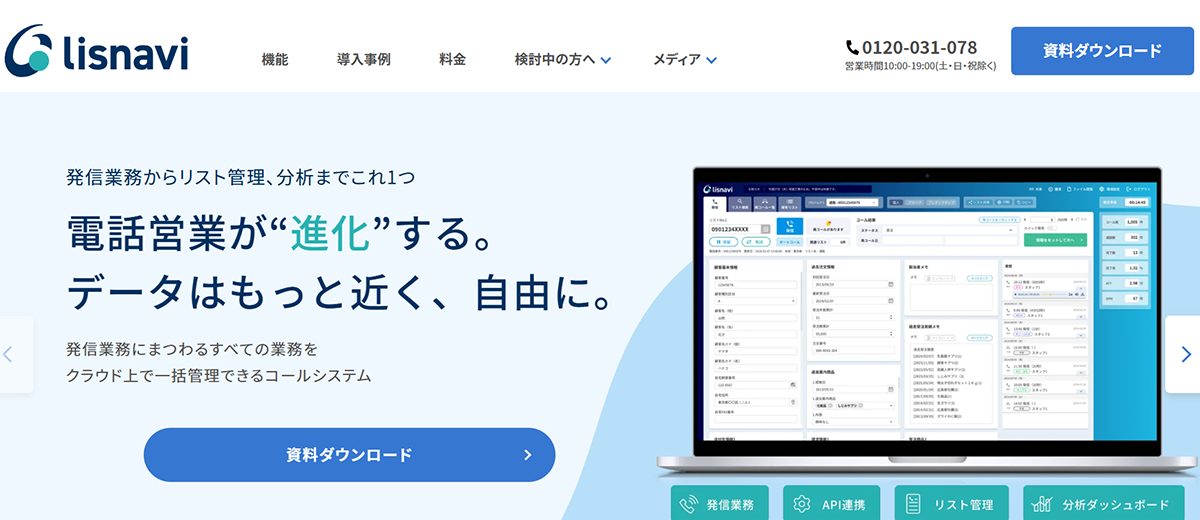 | lisnavi | アウトバウンド特化型で多彩な機能を搭載。発信から振り返りまでワンストップで行える | テナント料金:1万円 ブース料金:5,000円/ブース |