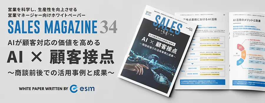 企業競争力向上のためのCRMであるesm(eセールスマネージャー)を提供するソフトブレーン株式会社(本社:東京都中央区、代表取締役社長:豊田浩文、以下「ソフトブレーン」)は、自社運営の営業力強化メディア「営業ラボ」において、「AIが顧客対応の価値を高める~商談前後での活用事例と成果~」と題した無料ホワイトペーパーを公開しました。